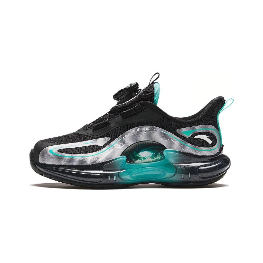 Anta Kids Round Head Knob Shock Absorbing Wear Resistant Low Top Running Shoes Kids Sneaker Black Silver Green 312419901-2