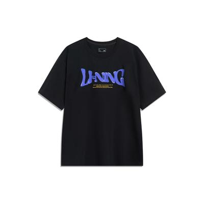 Li Ning Sports Lifestyle Series High Street American Vintage Letter Print Loose Comfortable Short Sleeve T-Shirt Unisex Tops Black AHSU741-2