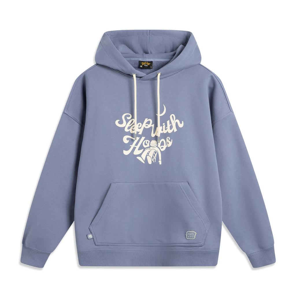 Li-Ning Basketball Series Lettered Hooded Comfortable Breathable Versatile Casual Loose Sweatshirt Men Sweatshirt Breeze-Blue AWDUF77-3
