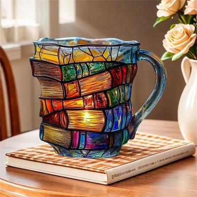 Yousheng 3D Painted Book Mug Hand-Painted Stacking Book Coffee Cup Unique Teacher Appreciation Gift for Book Lovers