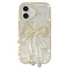 For iPhone 16 Plus Case Two Bow Epoxy Design TPU+PC Phone Back Cover Rhinestone Decor