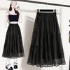 DIMANAF 2025 Plus Size Summer Elastic Skirts Casual Women Loose Long Skirt Pleated High Waist Fashion Vintage Maxi