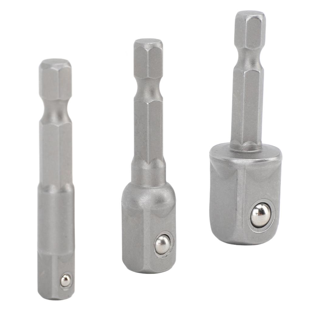 3 Pcs Power Drill Adapter Socket 14in 38in 12in Stainless Steel Hex Shank Square Head