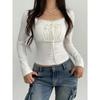 Rockmore Lace Stitching Kawaii T-Shirts Long Sleeve Spring Autumn Women Slim Casual Square Collar Basic Bottoming Pullover Tops
