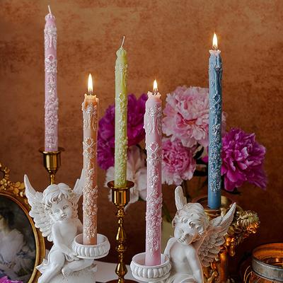 1PC Long Rod Candles Home Decoration Aromatherapy Candles Wedding Decoration Embossed Scented Candles Restauarant 5 Colors