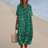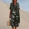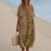 Women's Loose Casual Fashion V-Neck Printed Dress Beach Skirt