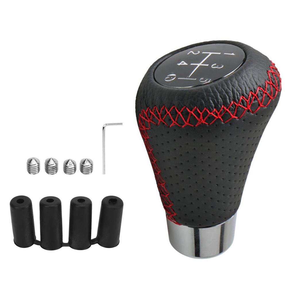 5 Speed Gear Shifter Head Genuine Leather Gear Shifter Knob Head Universal for Manual Gear Cars Red