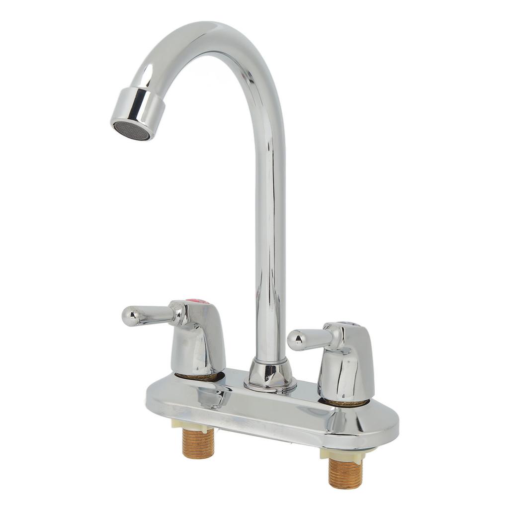 Sink Faucet 2 Handle 2 Holes Deck Plate Design Hot Cold Water Basin Mixer Tap for Bathroom Kitchen