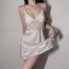 Pure Desire Deep V Lace Pajamas Satin Backless Plus Chest Pad Pajamas Lace-up Robes Loungewear Set