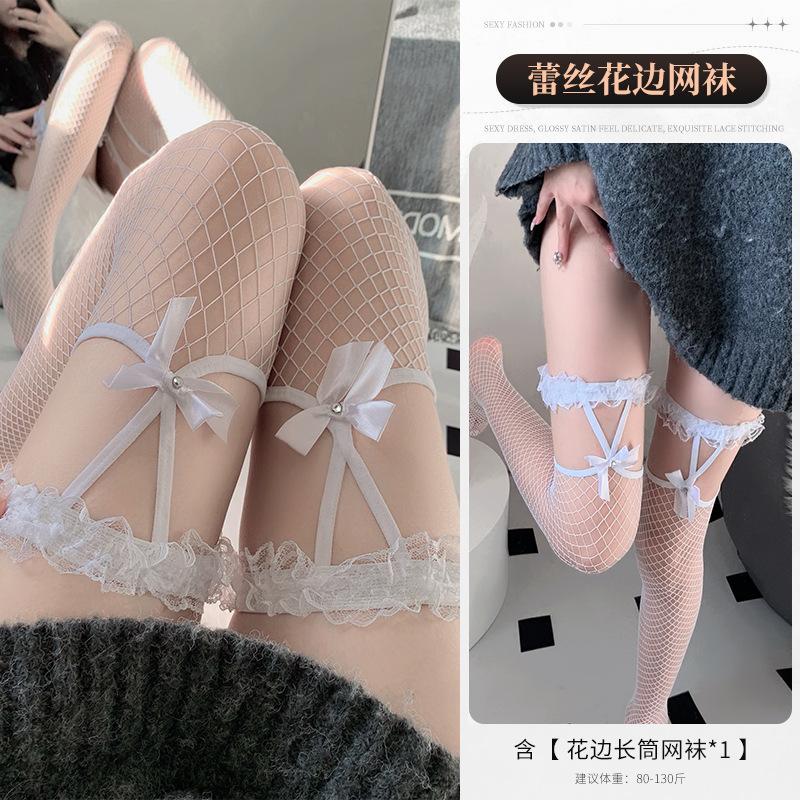 Sex Stockings Sexy Lace Silk Bow Long Legs Over Knee Fishnet Socks JK Lace Babes