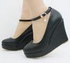 Thick-soled Wedge Single Shoes One-liner Strap White Round Toe Waterproof Platform Wedge Women's Shoes Wedge Wedding Shoes