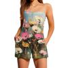 Women's Casual Fashion Floral Print Sleeveless Suspenders With Pockets Jumpsuit Shorts