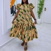 Features:Print, puffed sleeves