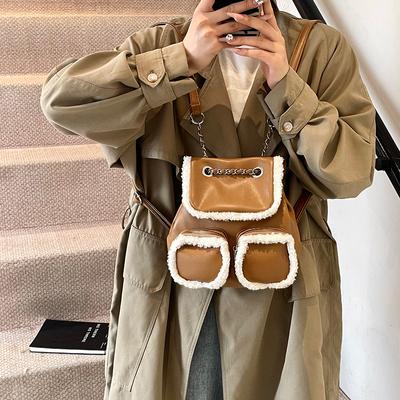 2025 Autumn and Winter New Girl Lamb Fluff Handbag Mini Casual Shoulder Crossbody Magnetic Buckle Fluff Bag