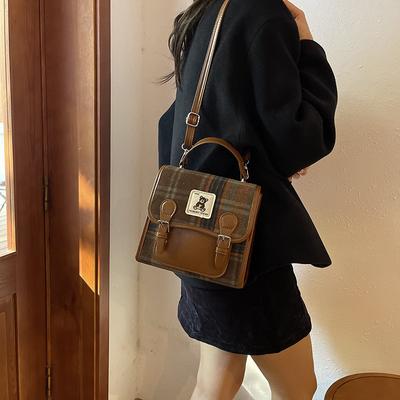 Plaid Shoulder Bag Season Niche Design Retro Versatile Messenger Bag Temperament Small Square Bag