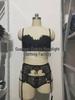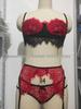 Women's Lace Suspender Lingerie Set with Eyelash Trim