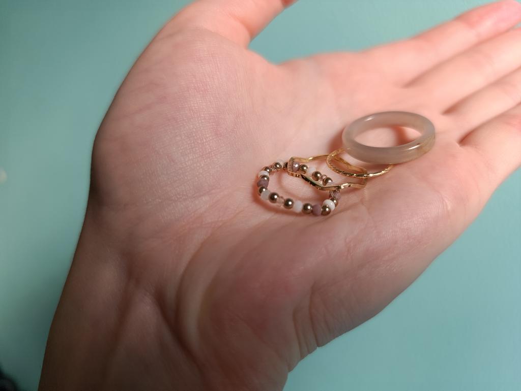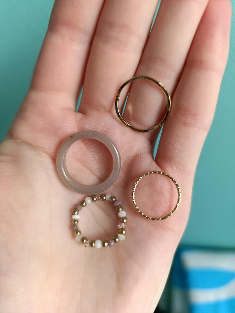 Nice. For small hands, the smallest ring is duuuuuuuch too small. I'm taking away stars because the colors didn't match; I wanted orange beads in the ring, but I got purple, and the large plastic ring was supposed to be brown. Besides that, the shape of the gold rings is also different, not like in the photo.
