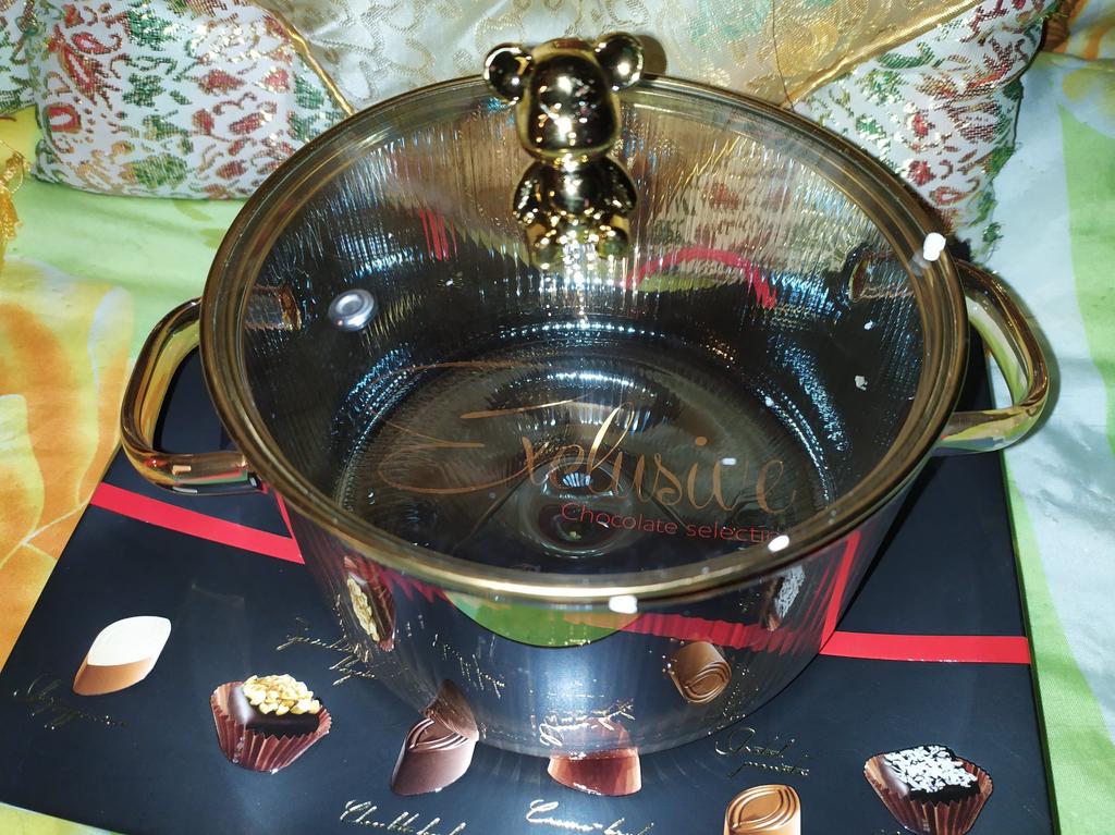 Transparent, pretty, behaves wonderfully on the gas stove, the bear on the lid of the pot is a source of admiration for my grandson, by the way, the pot and lid handle the dishwasher perfectly,