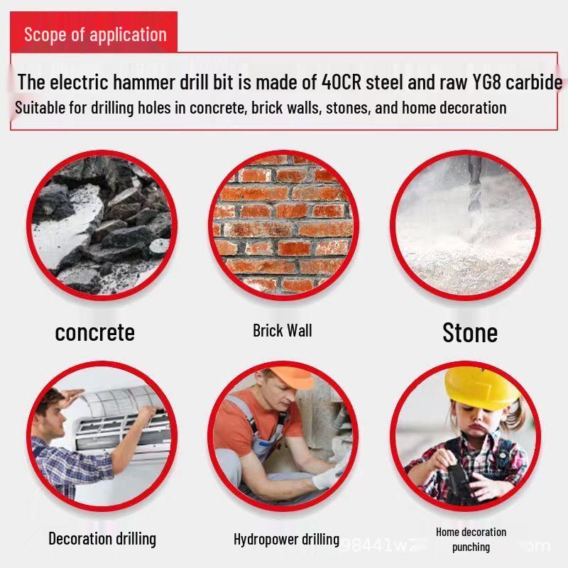 Extended Square Handle Electric Hammer Drill Bit for Concrete, Red, Round Handle, Four-Pit Impact Design
