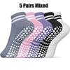 5 Pairs Yoga Socks for Women Double Stripes Socks Non Slip Pilates Yoga Grip Socks Women Sport Gym Workout Athletic Short Socks