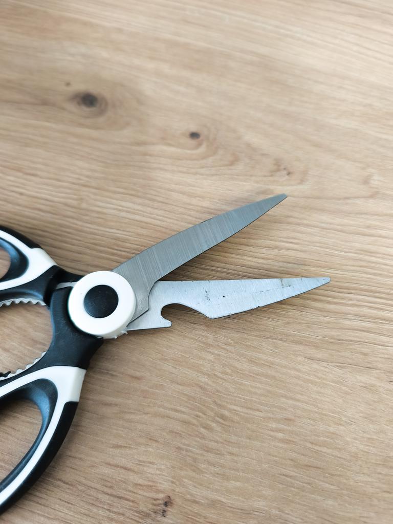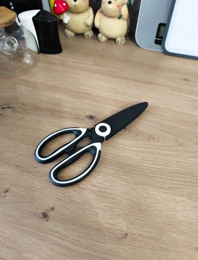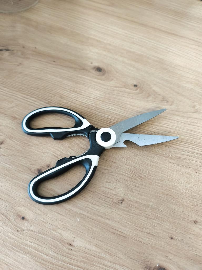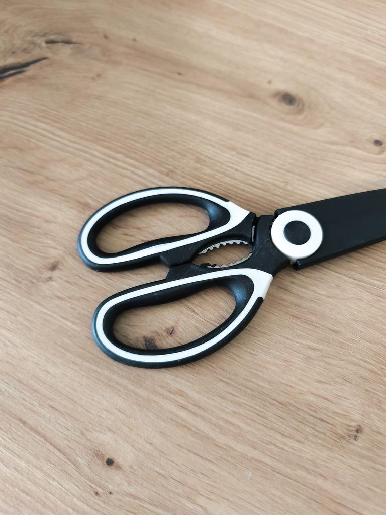 Multi-purpose kitchen scissors – a must-have tool in every kitchen These scissors are surprisingly high quality and powerful! The blades are made of very strong stainless steel, and they handle cutting chicken bones, hard vegetables, and more without any problem.. The handle is comfortable to hold even when used for a long time, and the fact that there is also a built-in bottle opener and nutcracker is simply ingenious – saves space and tools. Precise work, easy to clean, and quality that you feel in your hand. I recommend it to anyone who wants a reliable and strong kitchen tool.