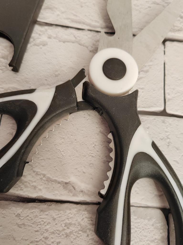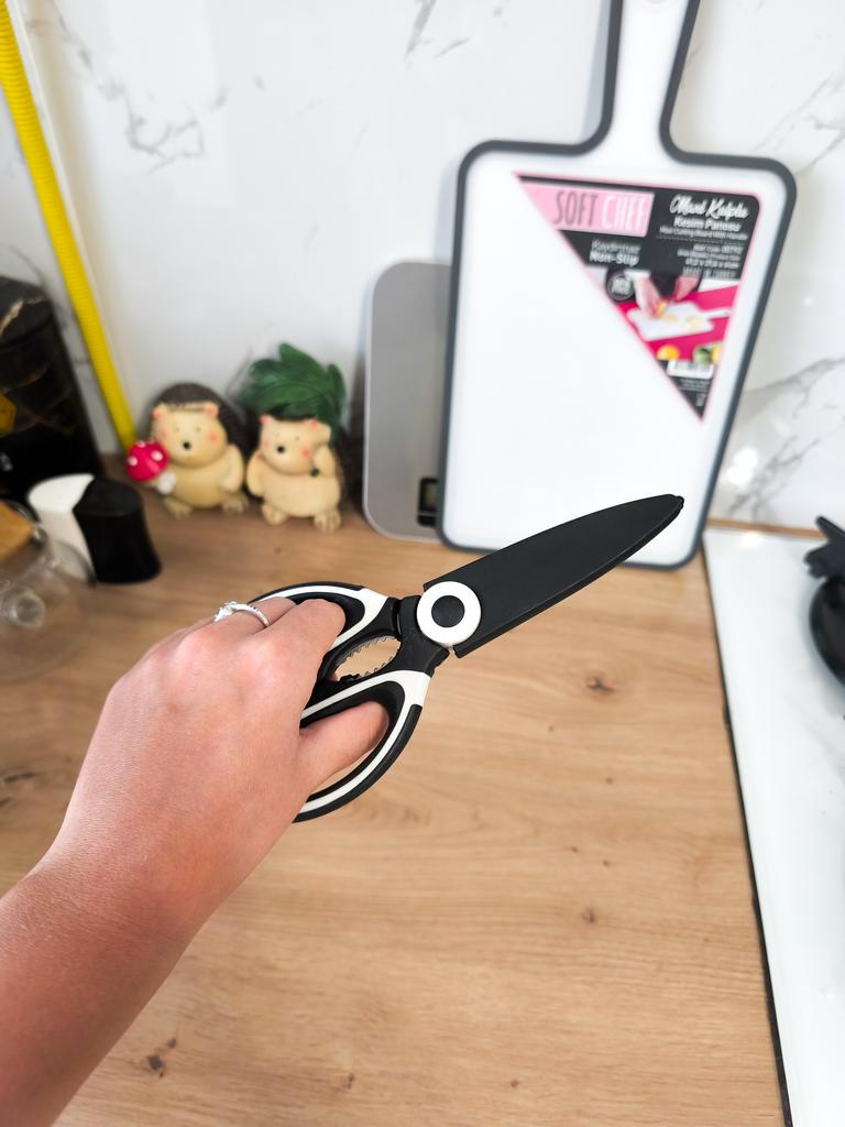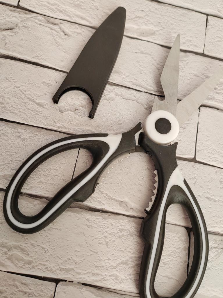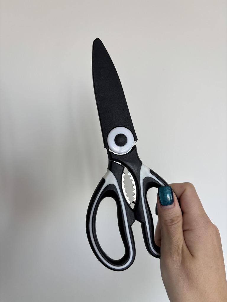 Multi-purpose kitchen scissors – a must-have tool in every kitchen These scissors are surprisingly high quality and powerful! The blades are made of very strong stainless steel, and they handle cutting chicken bones, hard vegetables, and more without any problem.. The handle is comfortable to hold even when used for a long time, and the fact that there is also a built-in bottle opener and nutcracker is simply ingenious – saves space and tools. Precise work, easy to clean, and quality that you feel in your hand. I recommend it to anyone who wants a reliable and strong kitchen tool.