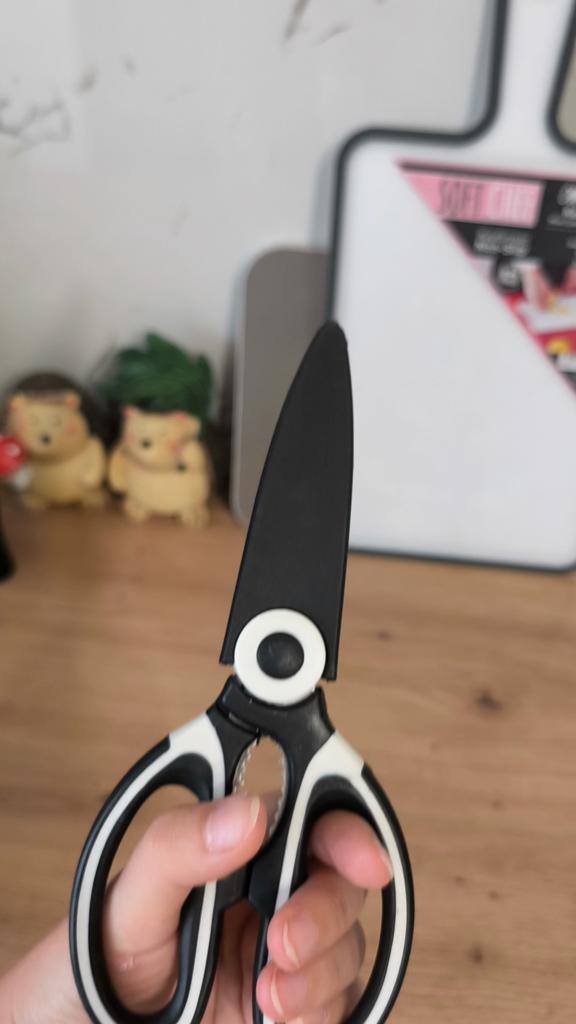 These multi-purpose kitchen scissors are a practical item that proves itself in daily use. They are made of stainless steel, which ensures precise cutting and high durability over time, even in challenging uses such as cutting chicken or fish bones.. The plastic handle is comfortable to hold and non-slip, making work safer. In addition, the design also includes a bottle opener and a nutcracker – a great advantage when looking for one tool for a variety of kitchen tasks. The scissors do not fold, but come with a protective cover, so storage is easy and safe. In short – a useful, high-quality, and very worthwhile product, especially for those who cook a lot at home.