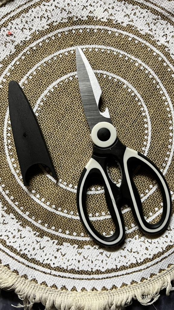 KITCHEN SCISSORS an indispensable tool in the kitchen, these scissors also function as a bottle opener and nutcracker. 3 tools in one 🤩 They are also supplied with a plastic case to secure the blades. Ergonomic plastic handle and steel blades. The package arrived in Italy with tracked shipping in 20 days. Packaged in bubble wrap envelope, they arrived intact. Recommended purchase 👌