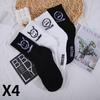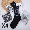 CHRLEISURE 4 Pairs/Set Long Barrel Socks Men's Black And White Socks Trend Cartoon Long Tube Comfortable Breathable Couple Socks