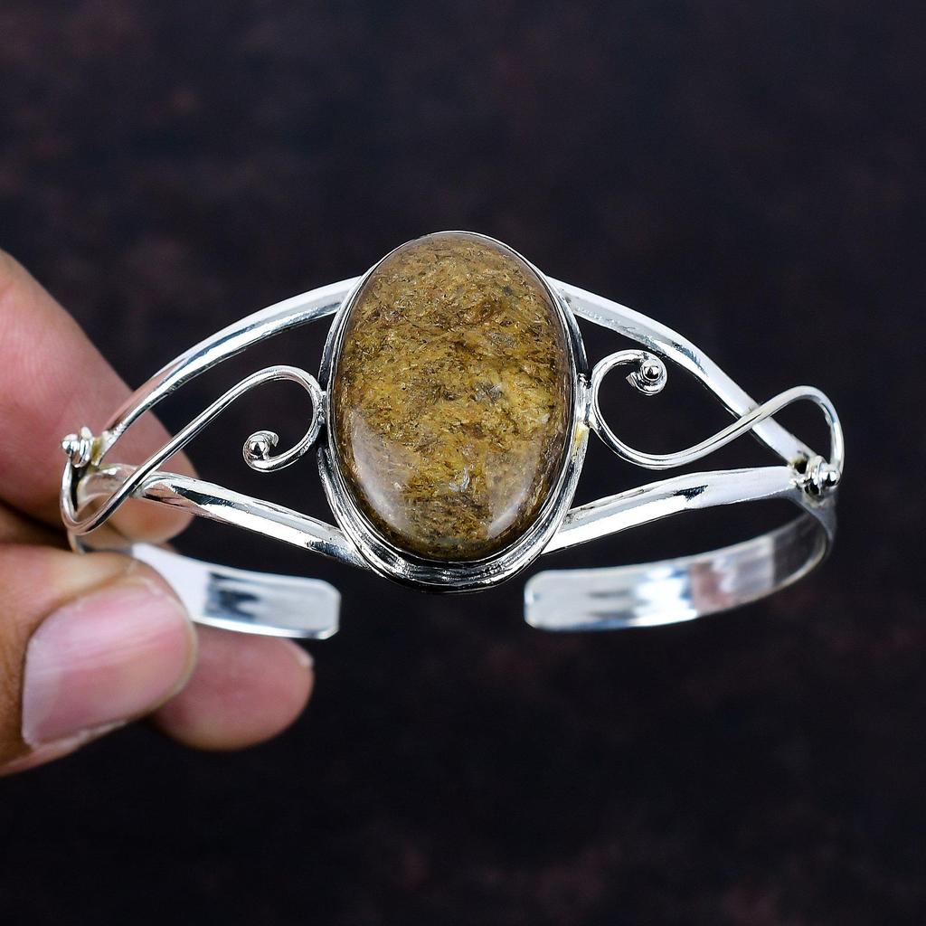 Bronzite Bangle Handmade Cuff Bracelet Gemstone Jewelry 925 Sterling Silver Adjustable Cuff Bracelet Latest Design Bangle Anniversary Gifts
