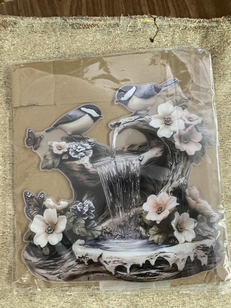 2D Flat Bird Butterfly Garden Fountain Ornament with Base, Indoor Ornament for Living Room,Desk Topper Tablescape Decor