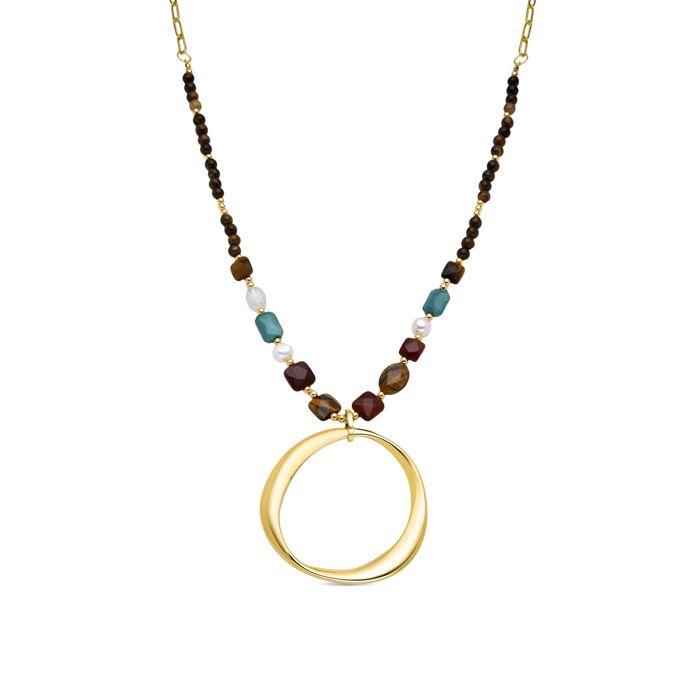 Collier - Luxenter - Miyou - Or Jaune 18k - Cristal Multicolore - 85 Cm + 3 Cm De Rallonge