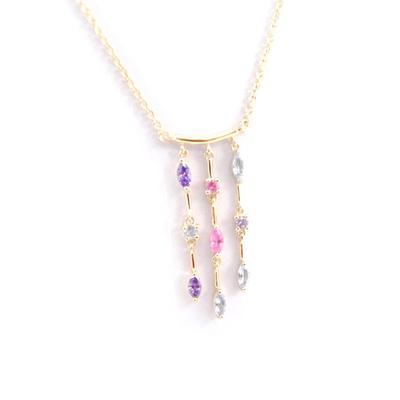 [H2915] - Gold Plated Necklace 'Scarlett' Blue Pink Mauve - 3 Cm