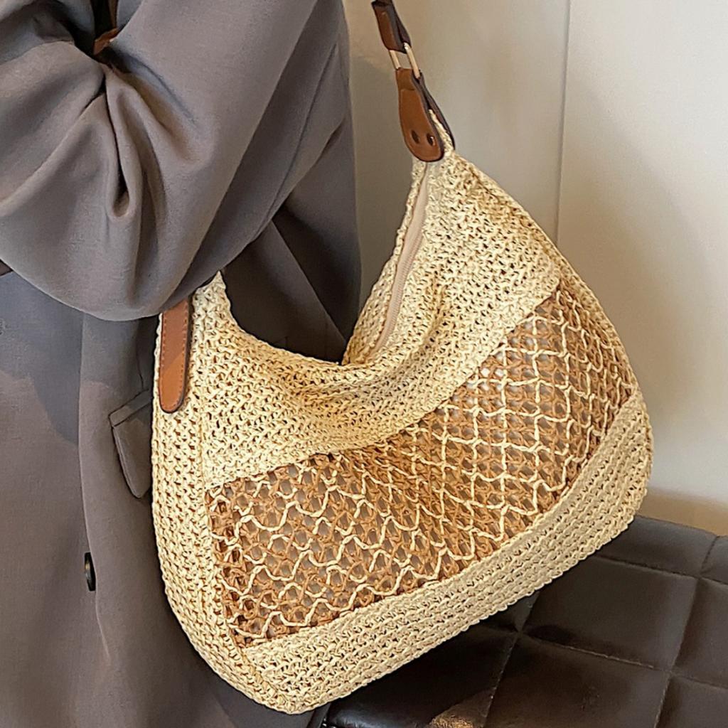 Holiday Wind Beach Straw Bag Women's New Fashion Hollow Woven Bag Casual Versatile Shoulder Messenger Bag Woven Straw Tote Bag for Women