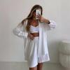 GMXIA Spring Solid-color Single-breasted Long-sleeved Shirt and Loose, Fashionable Casual Shorts Set