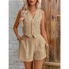 GMXIA Sleeveless Casual Vest and Shorts Set for Women, Linen Summer Fashion Two-piece Set for Women