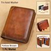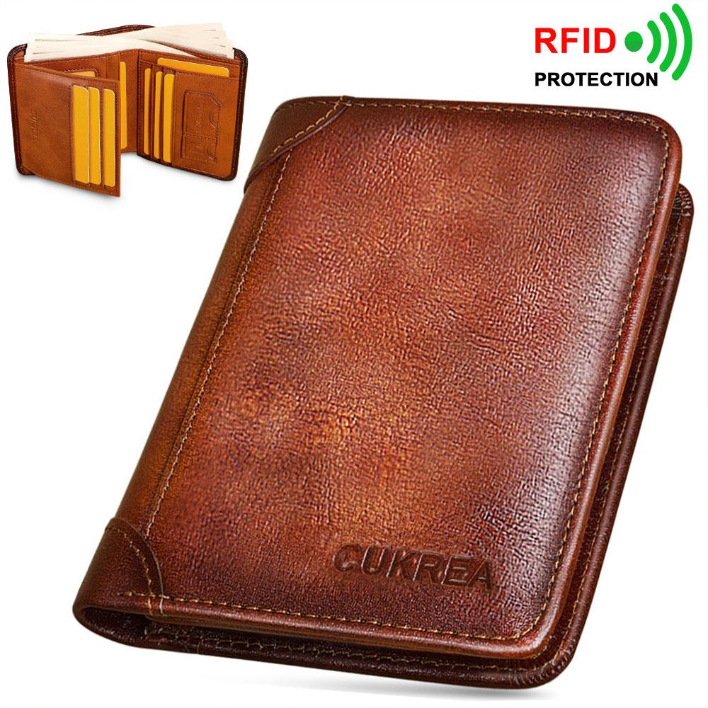 Men's Vintage Cowhide Wallet, RFID Protection Short Multi-Functional ID Card Credit Card Holder Top Layer Cowhide Money Bag 2 ID Card Windows