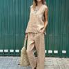 Women's Casual Sleeveless Pullover Cotton Linen Wide Leg Pants Solid Color Suit