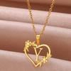 Gold Color Dainty Flower Initials Necklace Women Girl Stainless Steel Heart Letter Choker Necklace Best Gifts Alphabet Jewelry