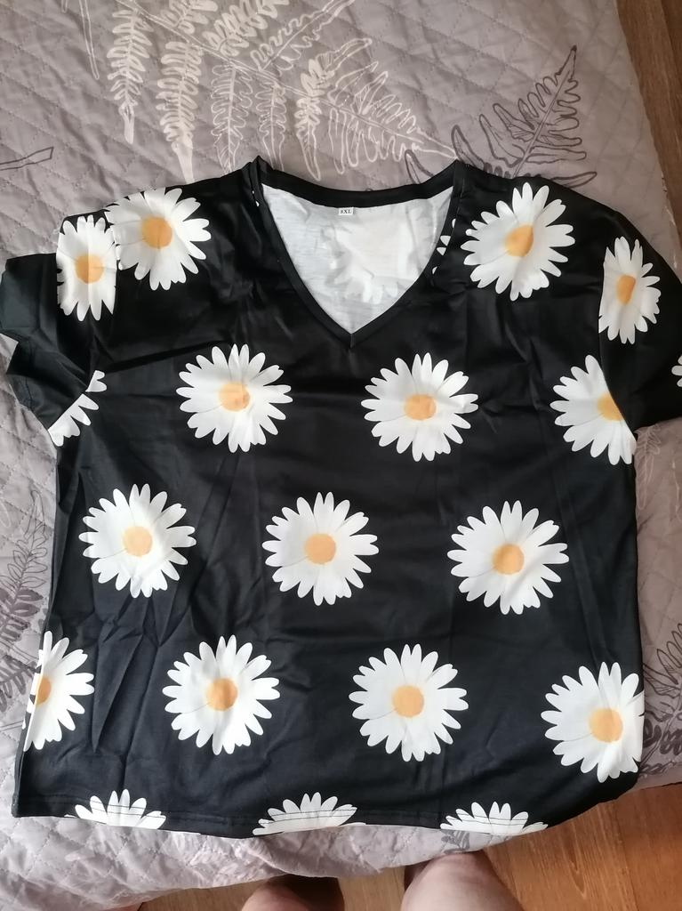 Thank you Joom for the gift. The size fit, the quality is not bad (synthetic, a bit shiny but cool and pleasant in the heat). Especially liked the beautiful pattern with daisies, it lifts the mood)