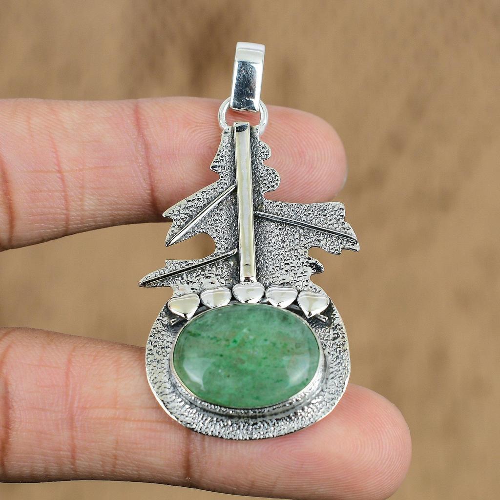 Anniversary Gift For Her Natural Green Aventurine Gemstone Pendant 925 Silver