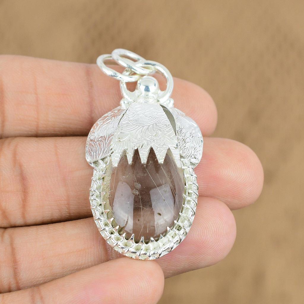 Birthday Gift For Her Natural Golden Rutile Gemstone Pendant 925 Sterling Silver