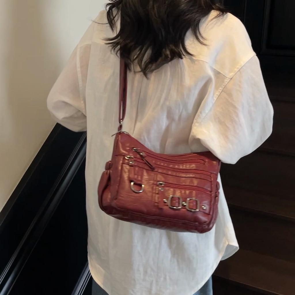 Soft Leather Shoulder Bag Women's Commuter Mother Bag Multi-Layer Crossbody Bag