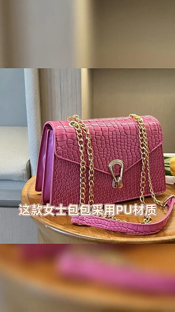 Ladies' Fashionable Rose Red Snake Patterned Crossbody Bag, Luxury Handbag, Lined with Chain Handbag