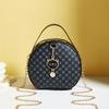 Ladies' Fashionable Black Round Shoulder Bag with Gold Accents and Decorations - A Compact Synthetic Leather Mobile Wallet Suitable for Daily Use