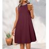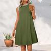 YYFS Women's Fashion Summer Spring Solid Color Print Sleeveless O-Neck Loose Waistline Casual Dresses
