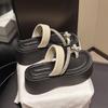 Small Height-increasing Platform Beach Shoes for Women's Summer Wear 2025 New High-end Silver Rhinestone Toe Slippers