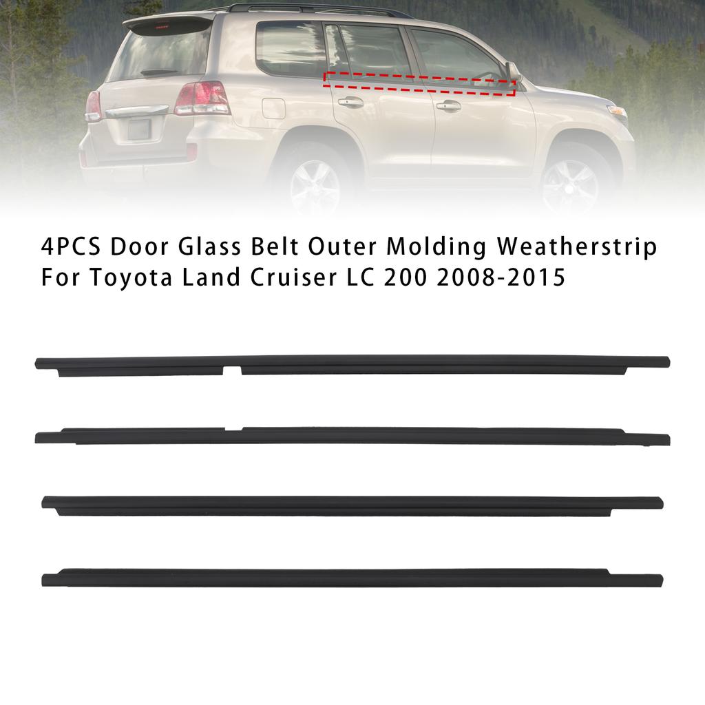 4PCS Door Glass Belt Outer Molding Weatherstrip For Toyota Land Cruiser LC 200 2008-2015