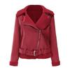 New Fashionable Ladies' Suede Jacket with Fur Lining Retro Thick Lapel Diagonal Zipper Belt Loose Women's Leather Coat