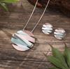 New Color Painting Oil Geometric Lines Round Stud Earrings Pendant Set, Fashionable Women's Versatile Neck Chain